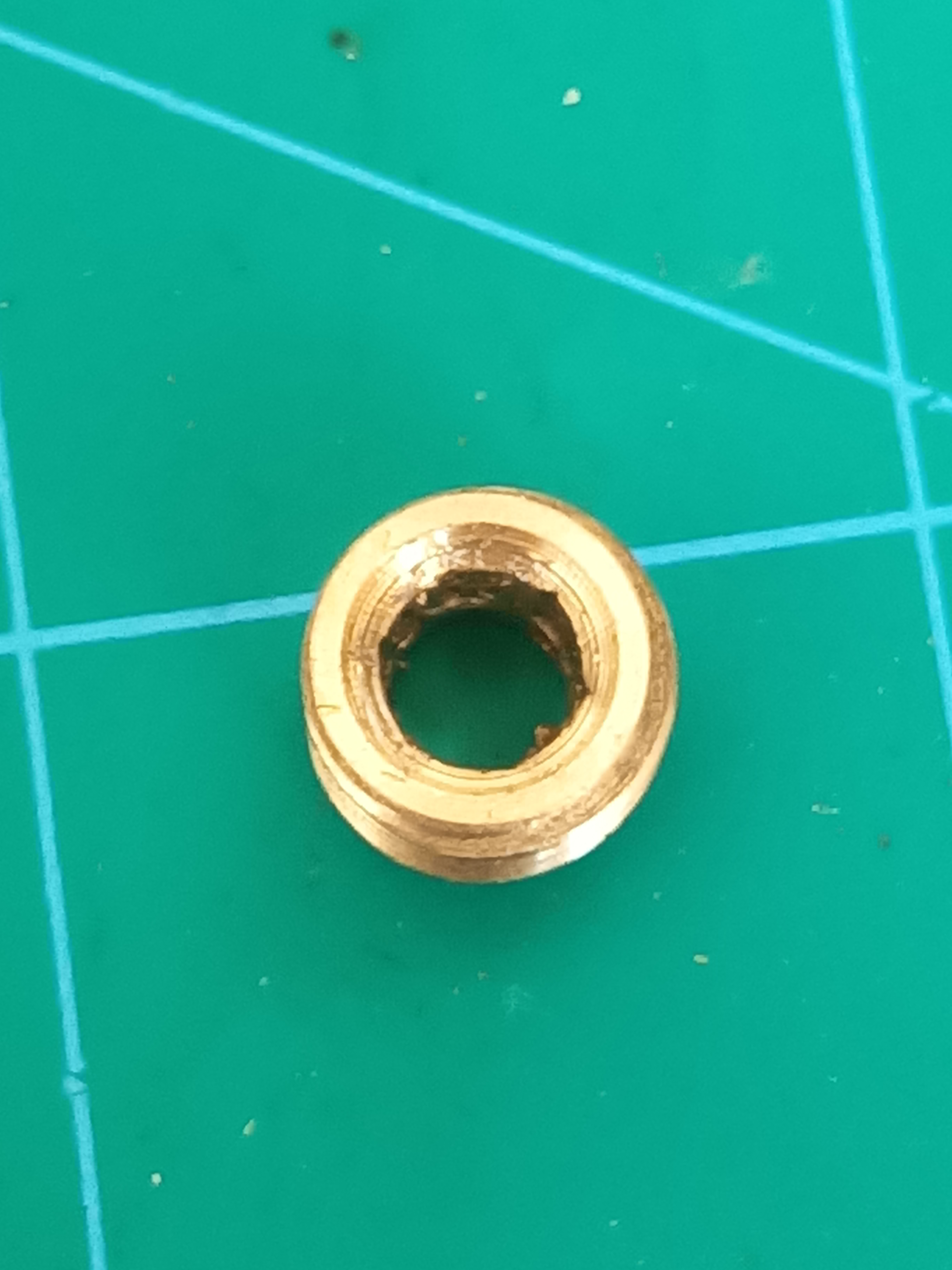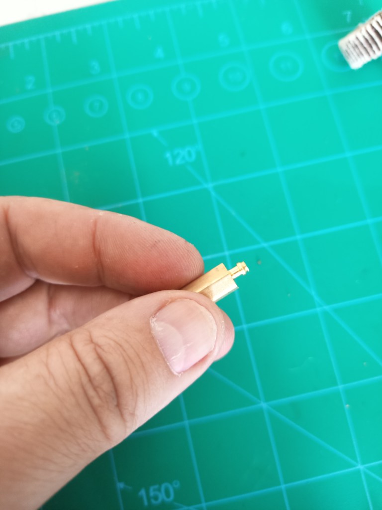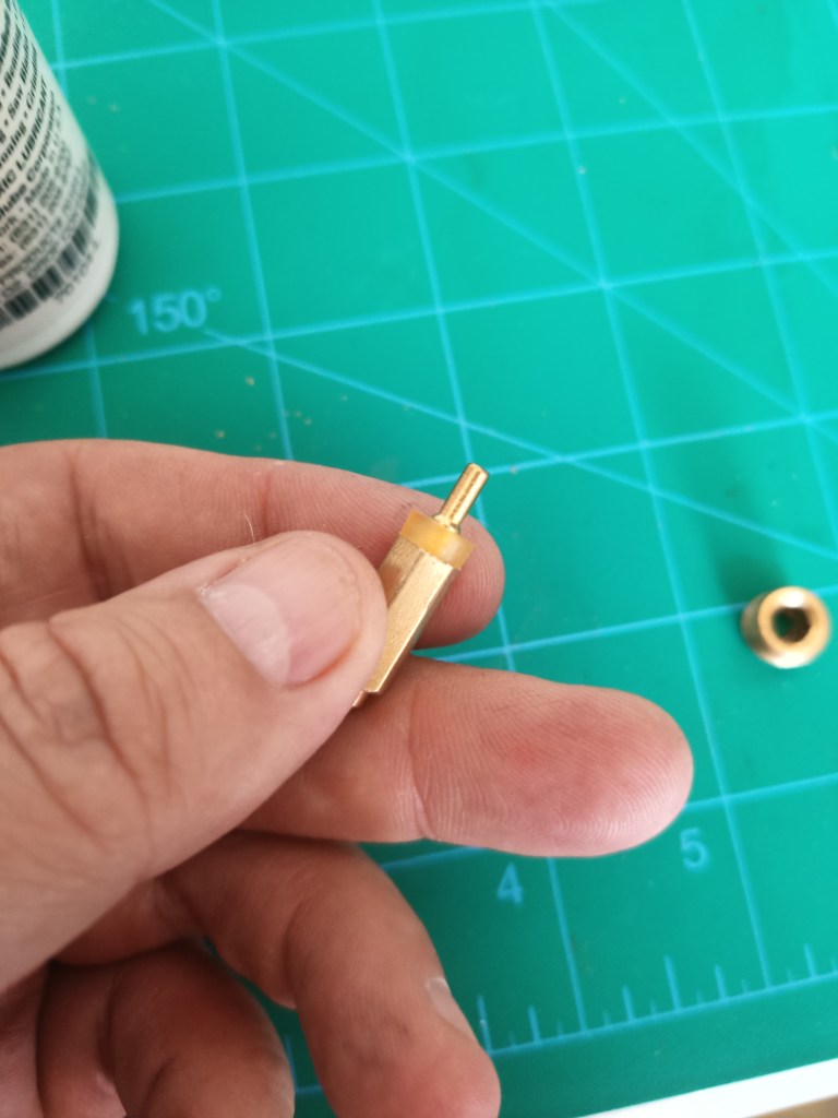 The end result was rather satisfactory but you must be sure to drill deep enough into the body of the valve to properly support the new pin that will be soldered in place.