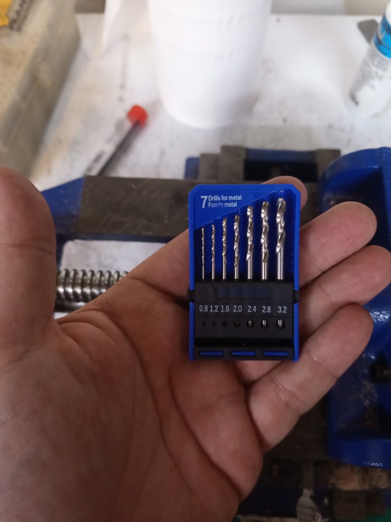 This next part will either require a lathe or a steady hand for the drilling of the replacement pin. Thankfully I have drilled out plenty of rivets in my career as an aircraft mechanic and since I do not have a lathe I reverted to my old skillset. The replacement pin is a section of 1/16 stainless rod. Converted to metric is 1.587 mm, I used the 1.6 mm bit from my Dremel 7 piece metallic bit set.