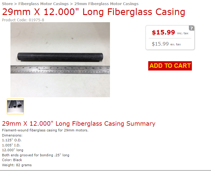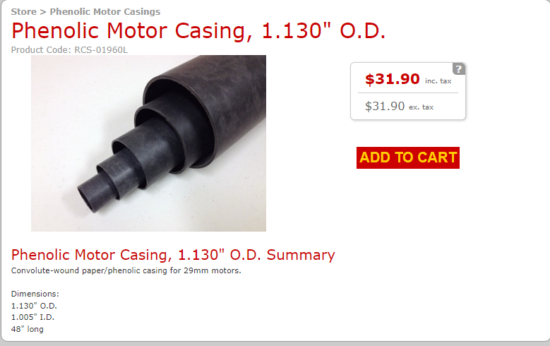 The alternative is the phenolic motor casing that has a 1.130 OD and a 1.005 ID. I just did not need 48 inches at this time. Once I get everything satisfactory I will probably order one.