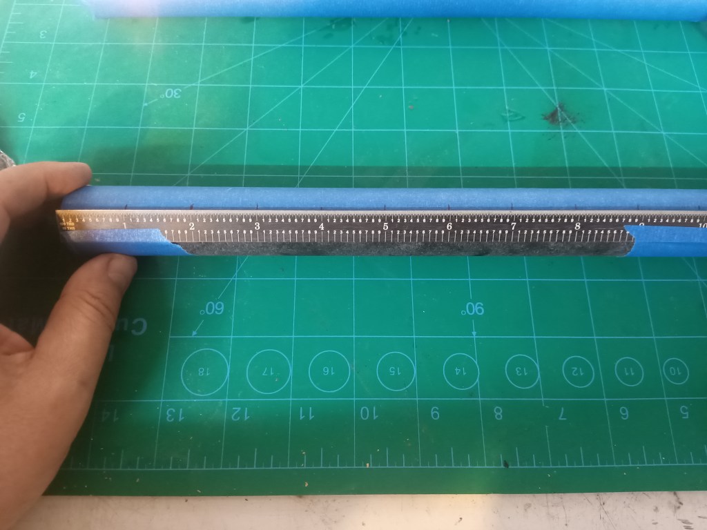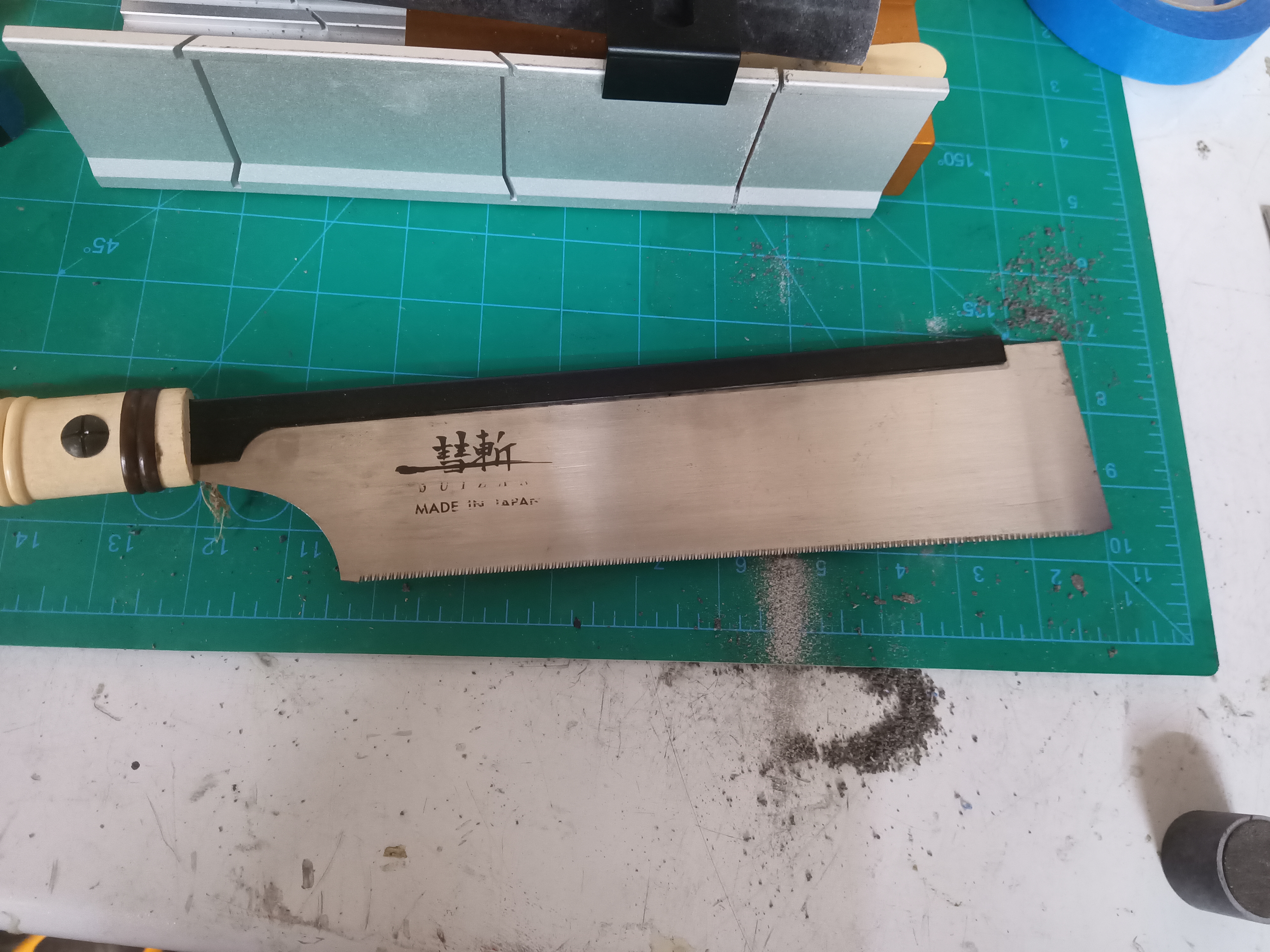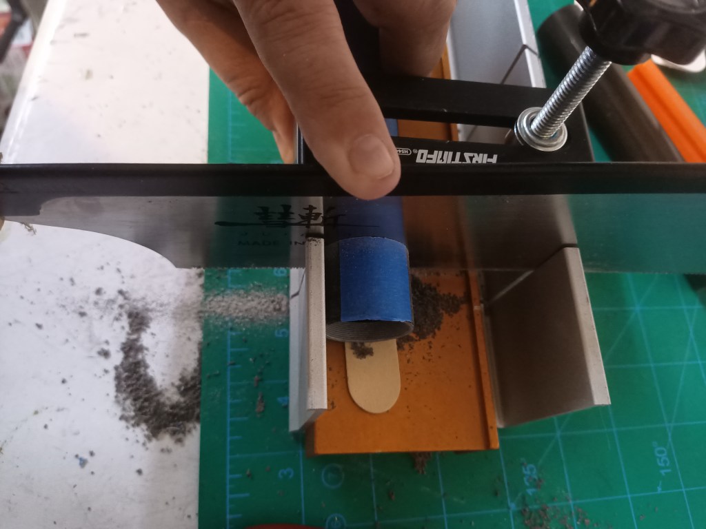 The fist step is to mark them off in 1 inch increments for both the grain and insulator. Instead of using the razor saws I used a larger Japanese saw, it cuts on the pull stroke and is available from Amazon. I use them a lot in my home improvement and other wood working projects. I also used a larger aluminum miter box that would accommodate the saw.