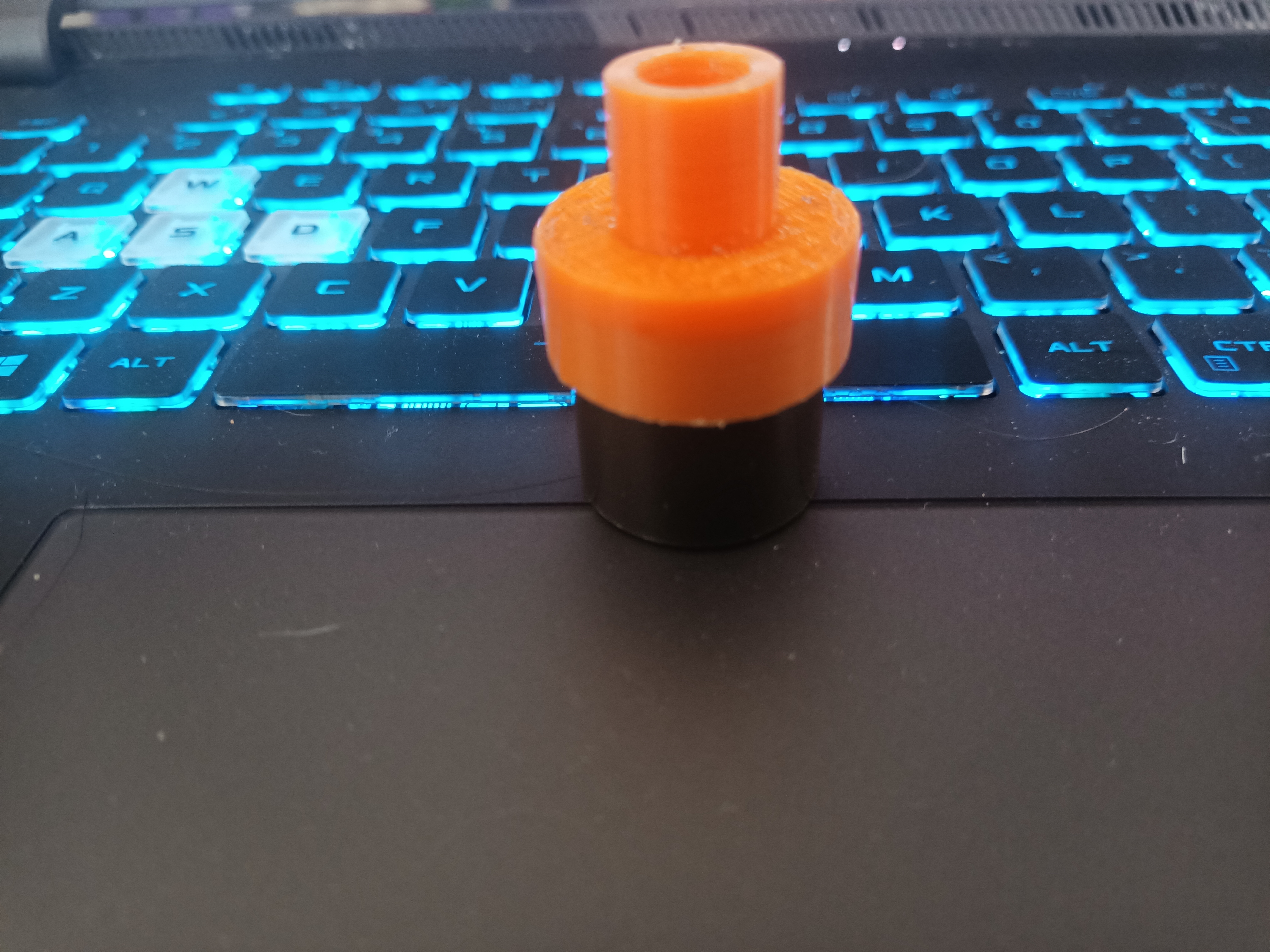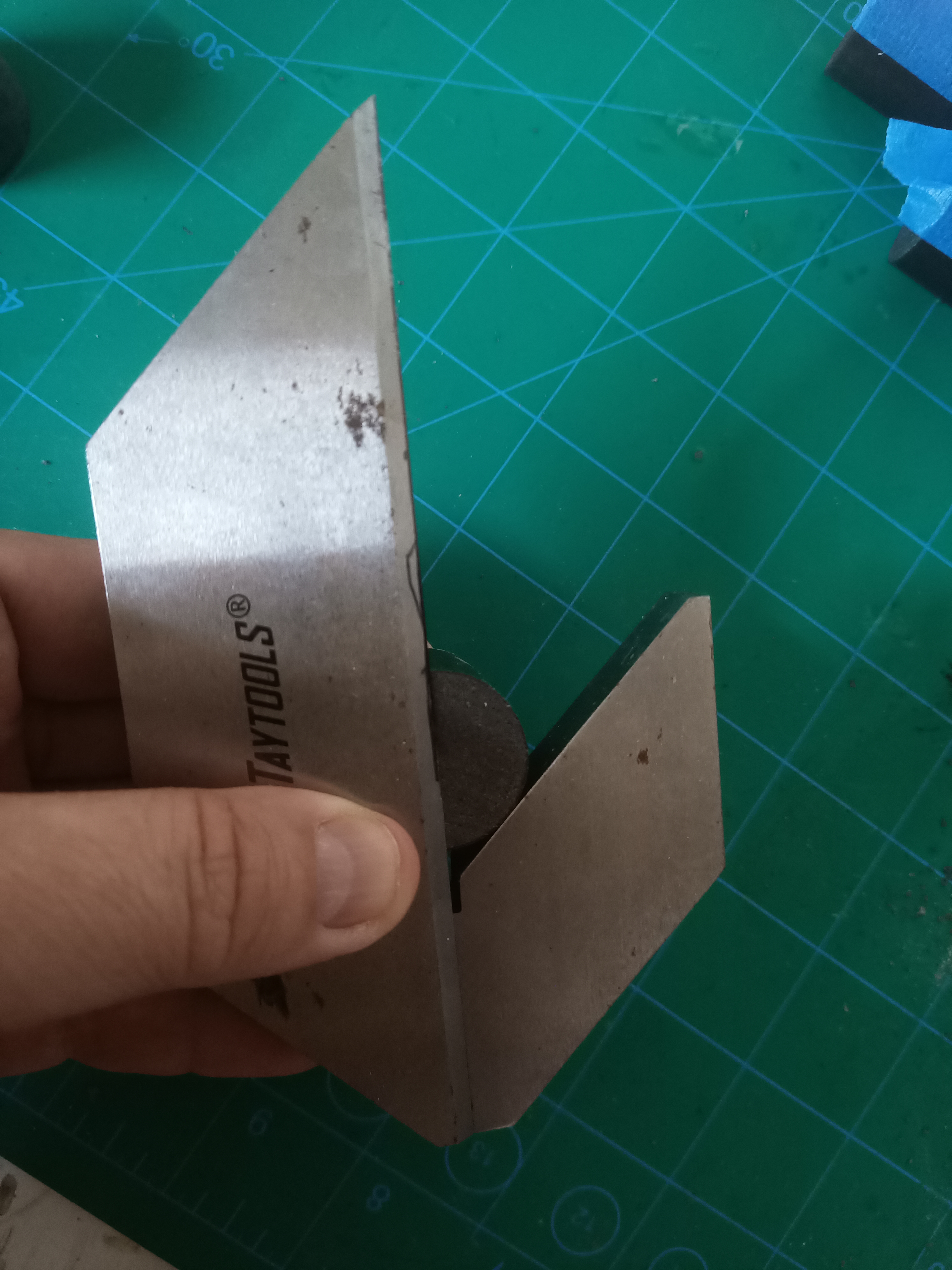 After using a center finder to mark the hole I got the idea to 3D print a drill guide to simplify the process. I designed it Fusion360 and it worked great. All that is needed to to be done now is to place the guide on top of the grain and drill the hole all the way through. Much neater and speeds up the process.