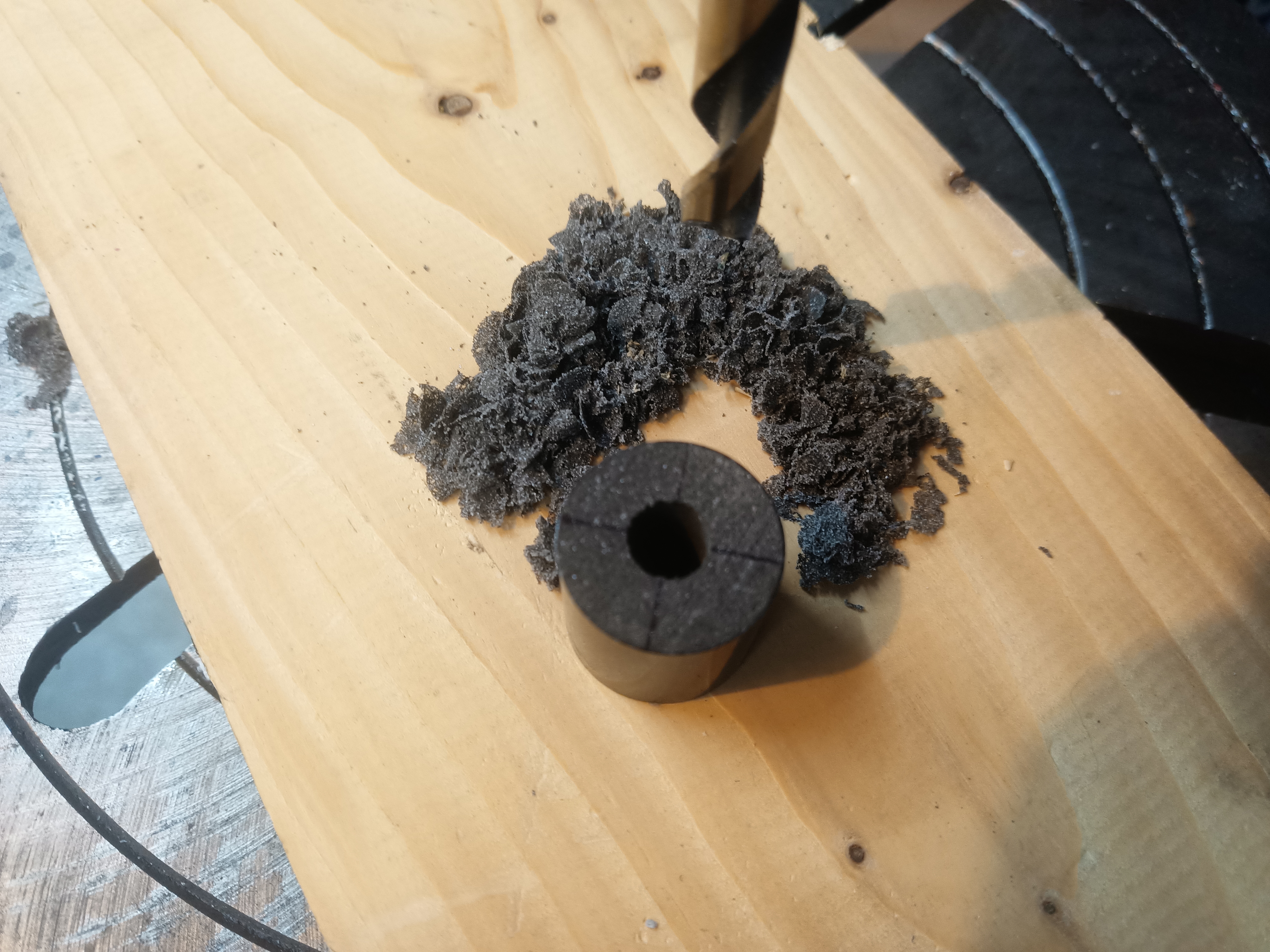 Once the grain and insulator is cut you must drill out the core because it comes from RCS as a solid tube of material. The use of a center finder makes it quite easy.