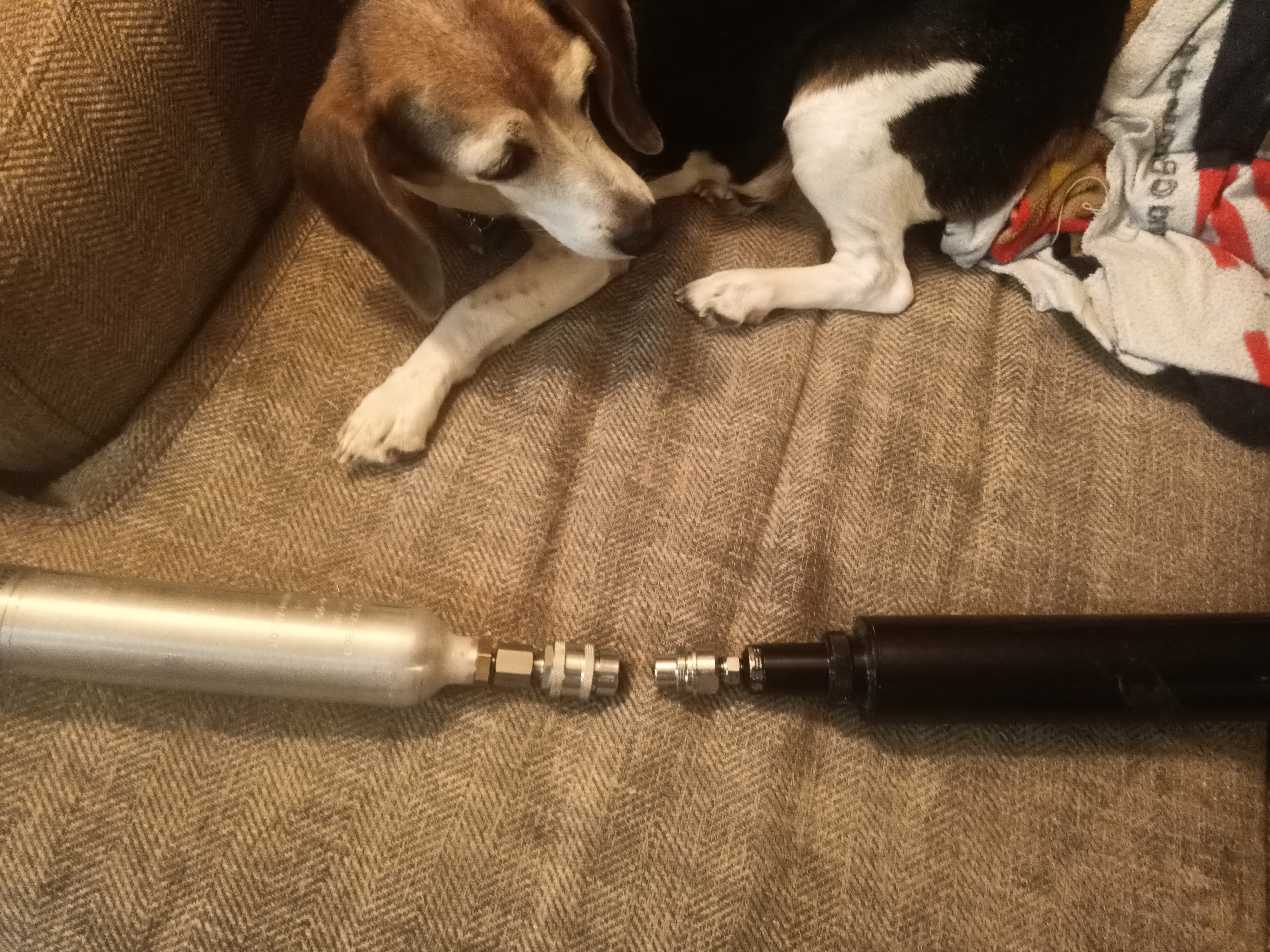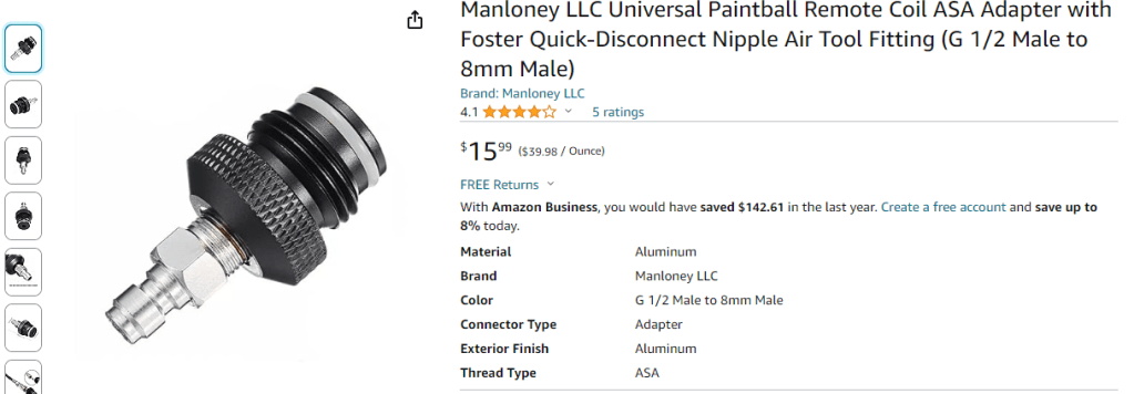 Although I did find a seller on E-bay offering a 10 pack of the same paintball adapter for 25 plus free shipping, so I took advantage of that to have spares in case of failures of the rethreading process. After removing the QD nipple and reprofiling the threads to fit the Aerotech forward closure, I added an stainless adapter to attach the hydraulic coupler to.