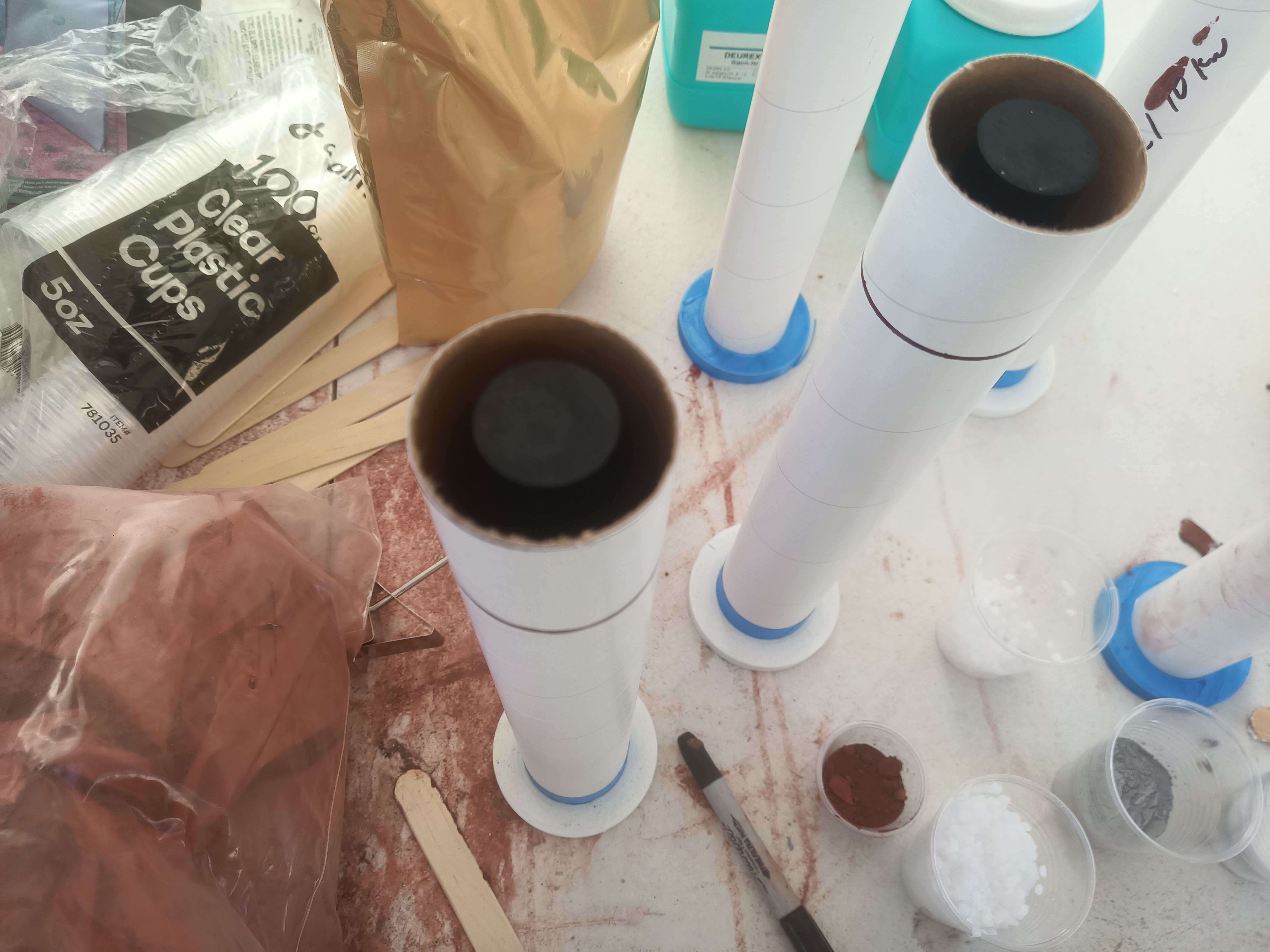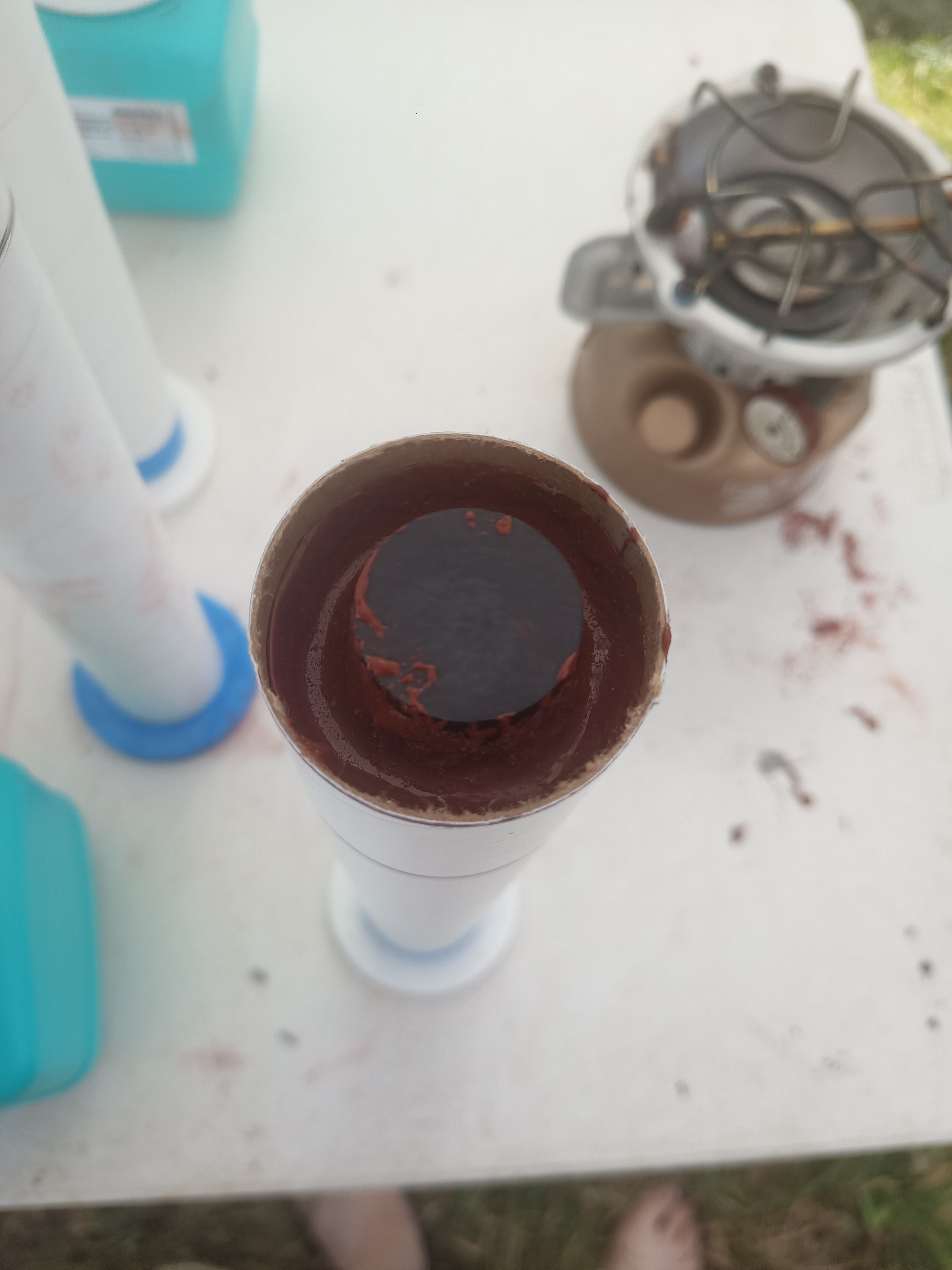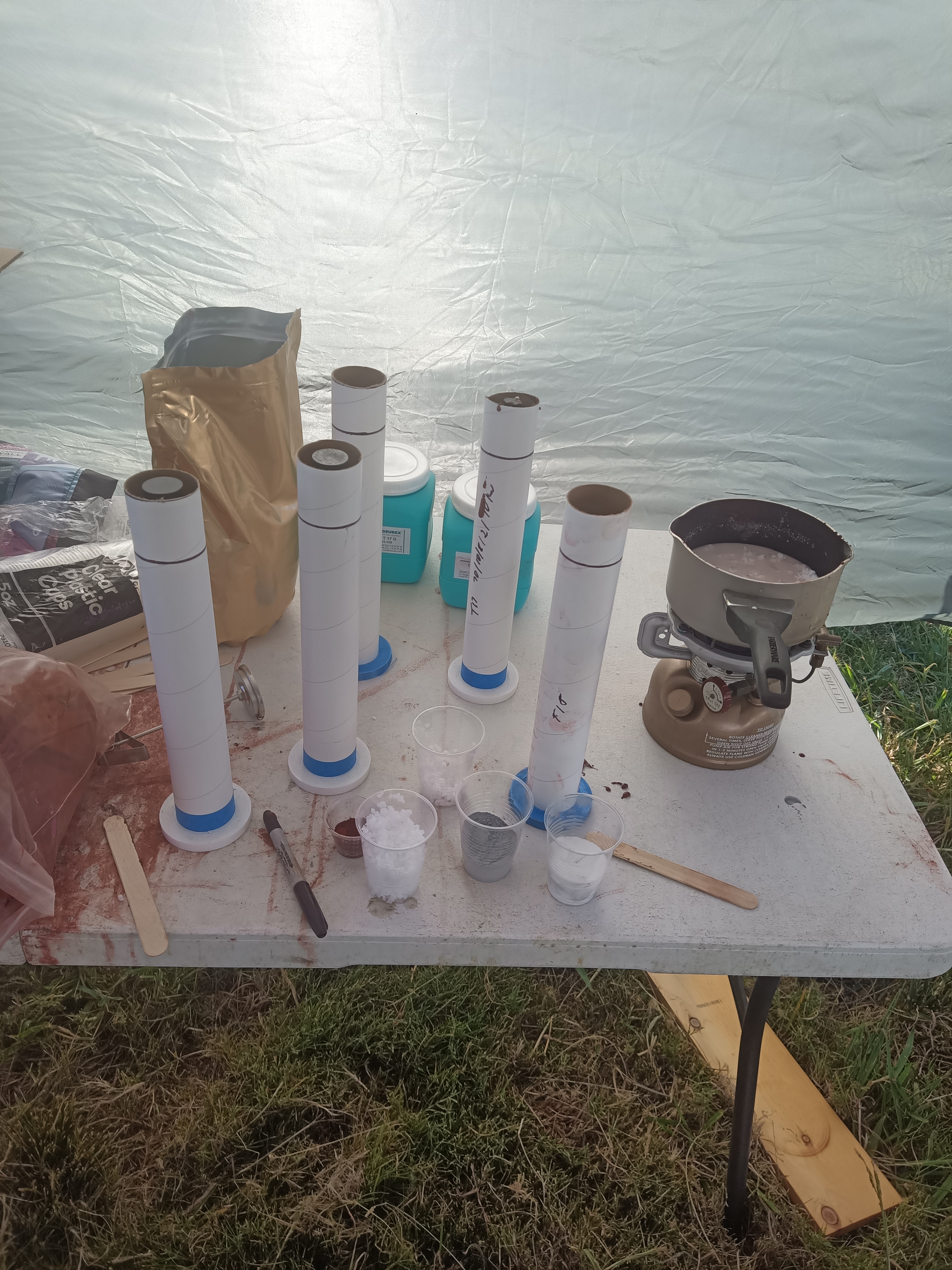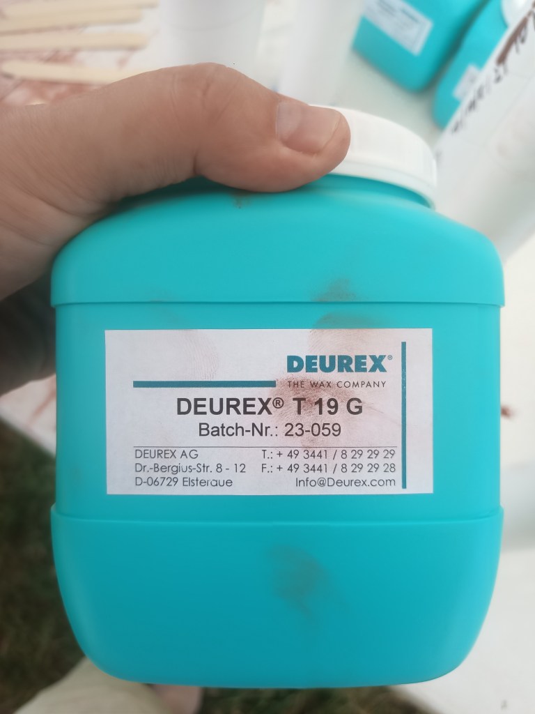 On top of the final tank configuration I finally got some high temp synthetic paraffin. After repeated attempts to procure some Shell Sarawax 70 without much luck, I was able to find an independent wax manufacturer in Germany. After telling them what I was using it for they sent me samples of 4 different types to try out. The one that blended best with the sorbital mixture was T19 from Deurex AG.