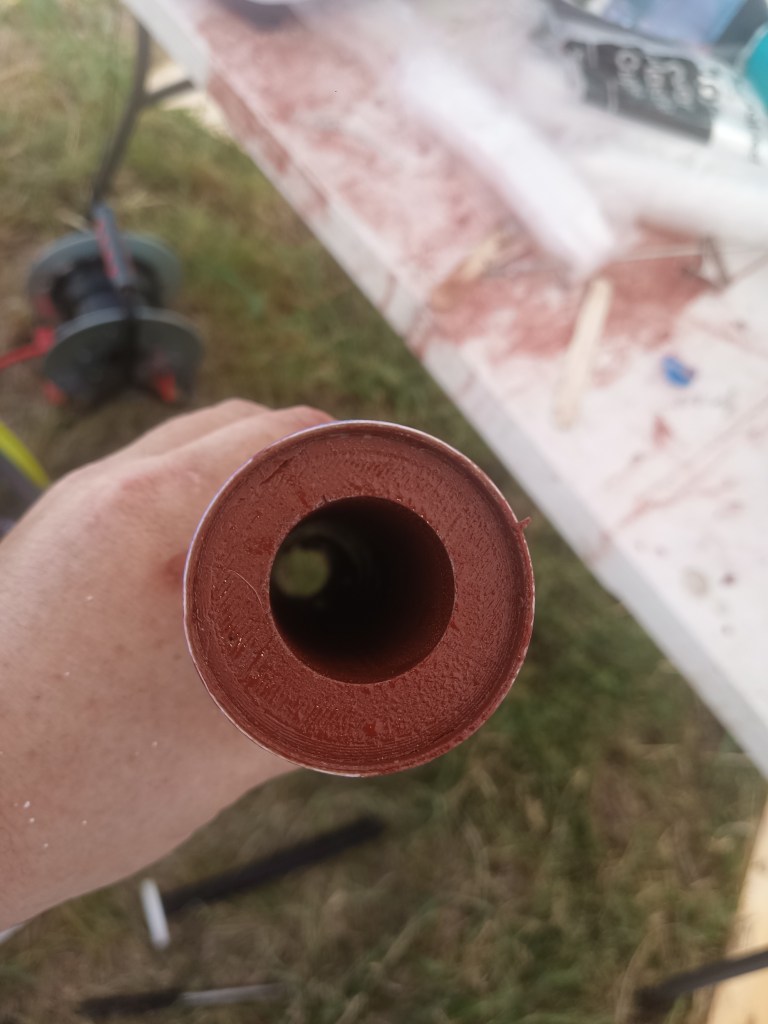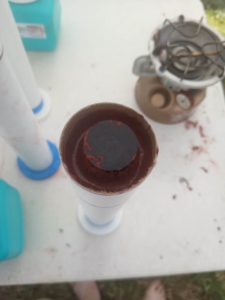 I had a few tasks to take care just before Balls. Unfortunately I did not get a chance to do a proper test firing due to the 50+ days of 100° and higher temps and the burn ban in my area. This post will update the final configuration for the tank connector and which grains I am bringing.