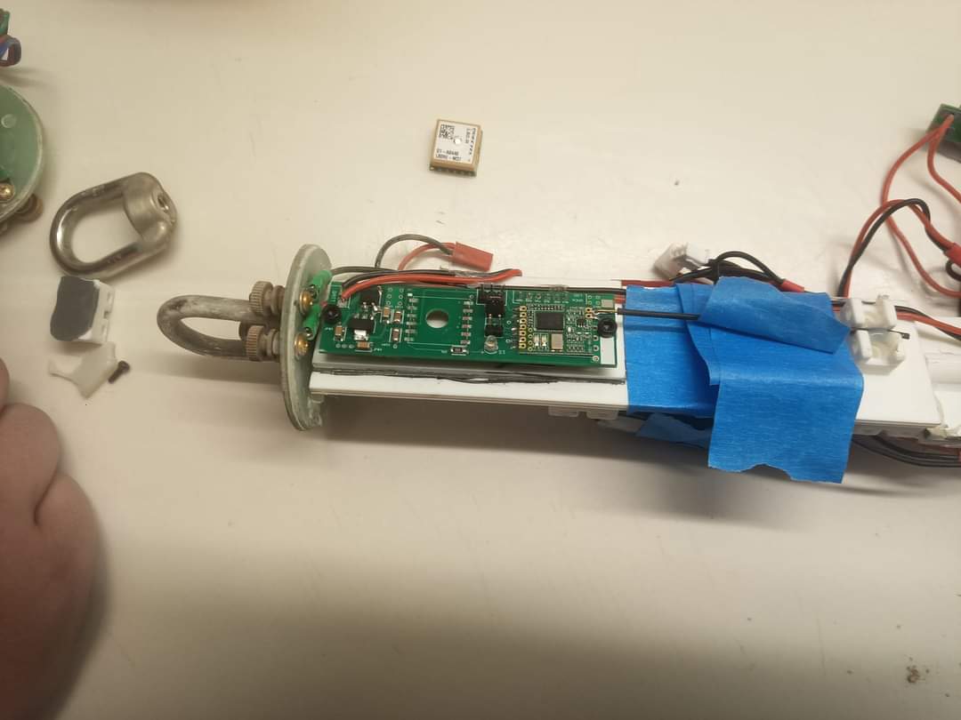 The exhaust plume is very light in color, those in the know have told me that means I was very close on the N2O/Fuel ratio. This flight went up to 2965 feet. I will still need to pull the data from the altimeter, unfortunately the recovery charge went off but the main did not deploy, this resulted in a hard landing destroying the avionics package. I was hopeful that he memory card in the GPS was good, but as luck would have it, I did not format it, so no data from that piece.