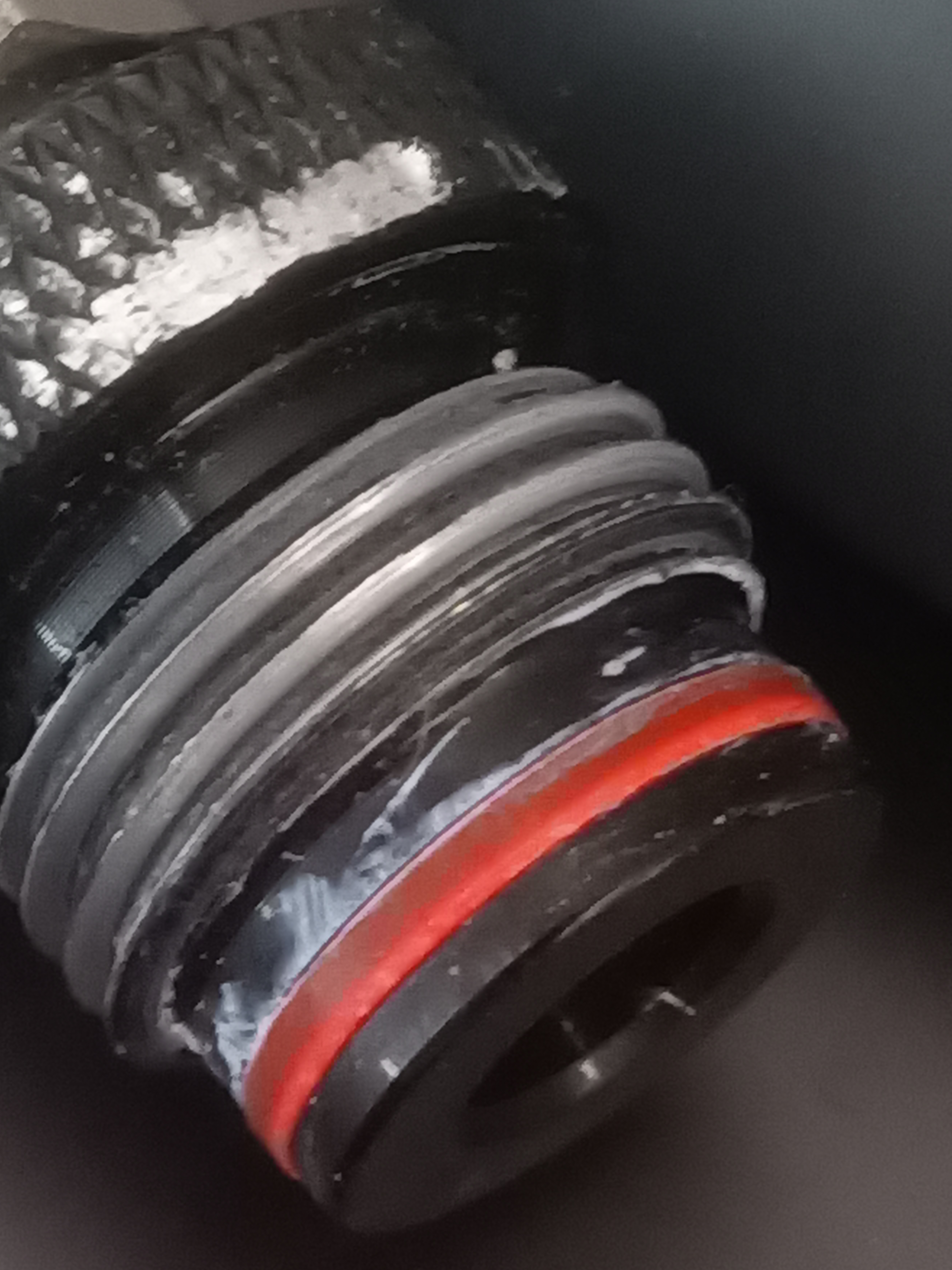The O-ring on the paintball tank adapter was compressed. Consider this a single use item, they are cheap and can be gotten in quantities of 100 from Amazon.