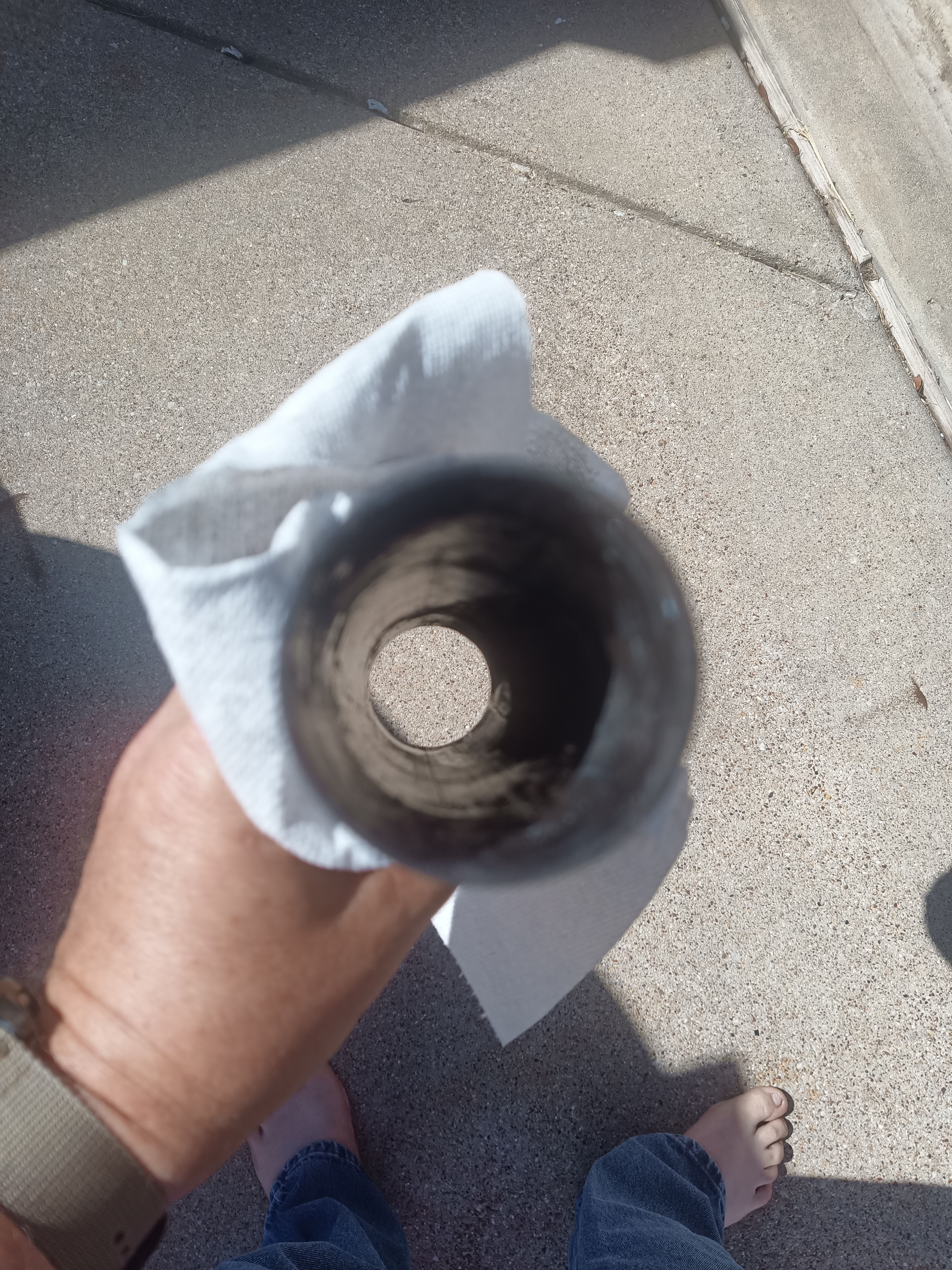 After driving 1740 miles in two days I was able to devote time to doing a post launch analysis of the motor. The pyrovalve, a 1/4 inch section of an Estes C-6 motor, burned almost completely.