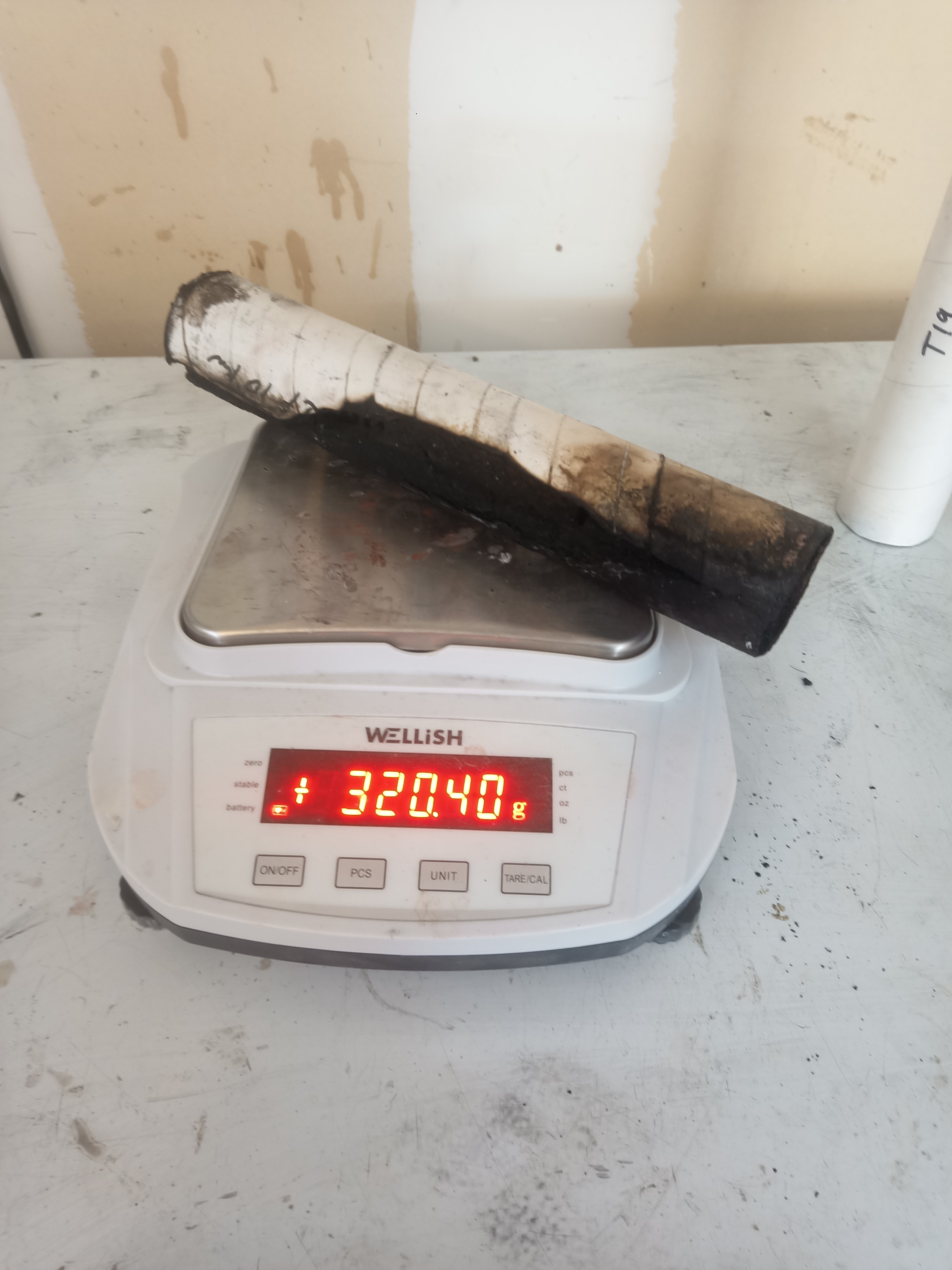 The propellant grain weighed 535g, weight after launch was 320g. The liner was in great shape with no burn through and could probably be used again.